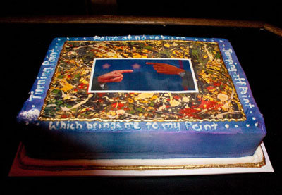 ![]() The "Stupid Pills: The National Canvas" art cake. |