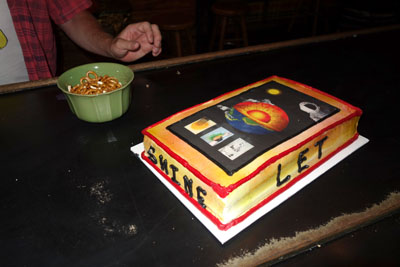 ![]() The "Stupid Pills: Aurgasm #1 - The Attack of the Drones" art cake. |