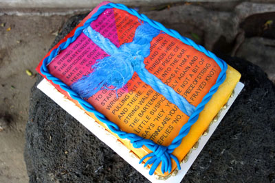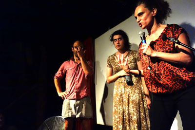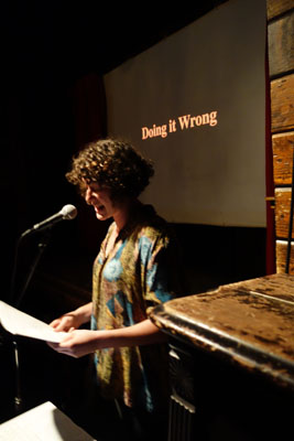 Cameron Crone reads his artist's statement backwards, Samantha Roth talks about "Doing it Wrong," and David Gilbert introduces us to Mona Gemini and her sister, poet Lisa Gemini (Gilbert's video is taken from rehearsals). |
