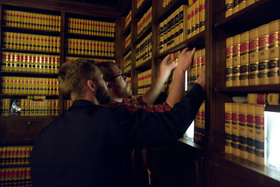 ![]() Michael Henry Hayden and Anthony Lepore installing negatives. |