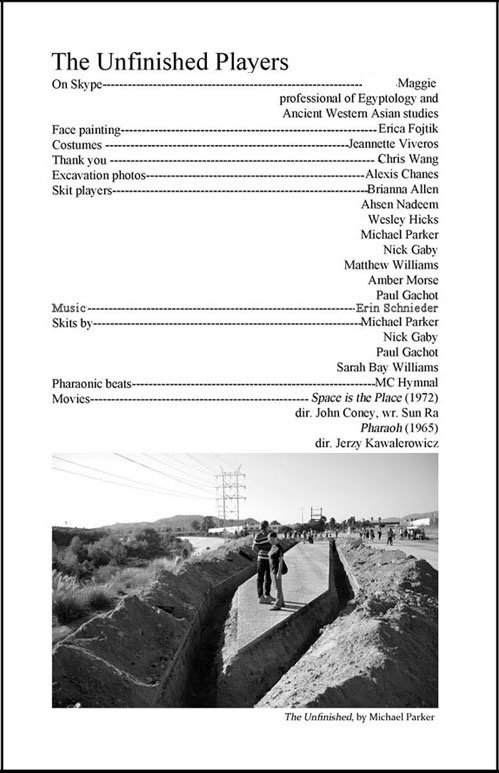 Whereupon the pharaoh Hatshepsut, the artist Michael Parker, and their respective obelisk laborers quit digging, compare notes, and let loose, ancient-style. ![]() Last month we achieved time-travel between two artists from different centuries. Now we're turning the dials on our time machine to 11 to cleave open a multi-millennial wormhole for an inter-obelisk block party. First, let's jump back 3500 years to the granite quarries of Aswan, Egypt. Hatshepsut runs a tight ship. As pharaoh, she commissions a record-breaking obelisk; a monument to divine powers and earthly engineering. Workers carve deep into bedrock, many moons pass, but one day a fissure appears across the 137-foot monument; the project is ditched, the obelisk left supine, the workers left heartbroken. Meanwhile in 2014, Michael Parker (creator of the steam egg, cold storage, lineman) finds himself walking across the LA River and thinking of the complexity of present and historic power struggles. Wouldn't it be grand if we had our own horizontal monument? In a cosmic tumble of seeming impossibilities, forces align and suddenly he and friends are excavating a 137-foot obelisk into the asphalt alongside our concretized river. Read about the creation of The Unfinished here and here. Now to this week. While one can never complete a sculpture called The Unfinished, one can certainly celebrate the achievement of its unfinishing. Join us for a playful night of unfinished business with Michael Parker, Hatshepsut, re-enactment skits by The Unfinished Players, face painting, ancient beer, work songs, a screening of Sun Ra's Space is the Place, and the pharaonic beats of MC Hymnal. There will be cake. Doors at 7:30 ![]() |